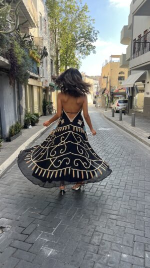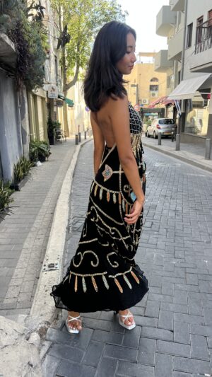 שמלת רקומה תכלת כתום חרוזים | שחור