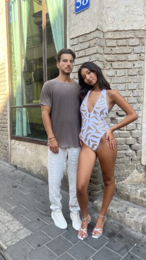 בגד גוף/בגד ים רקום גב פתוח | לבן