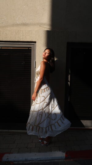 שמלת רקומה תכלת כתום חרוזים | לבן
