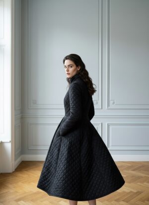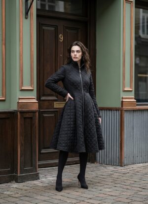 מעיל קווילט פרינסס בינוני עם 4 כפתורים/שחור