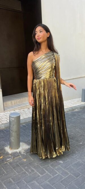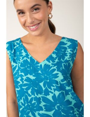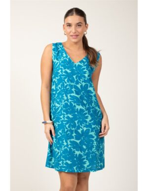 שמלה משי וי ספגנטי גב חשוף רבידה | טורקיז