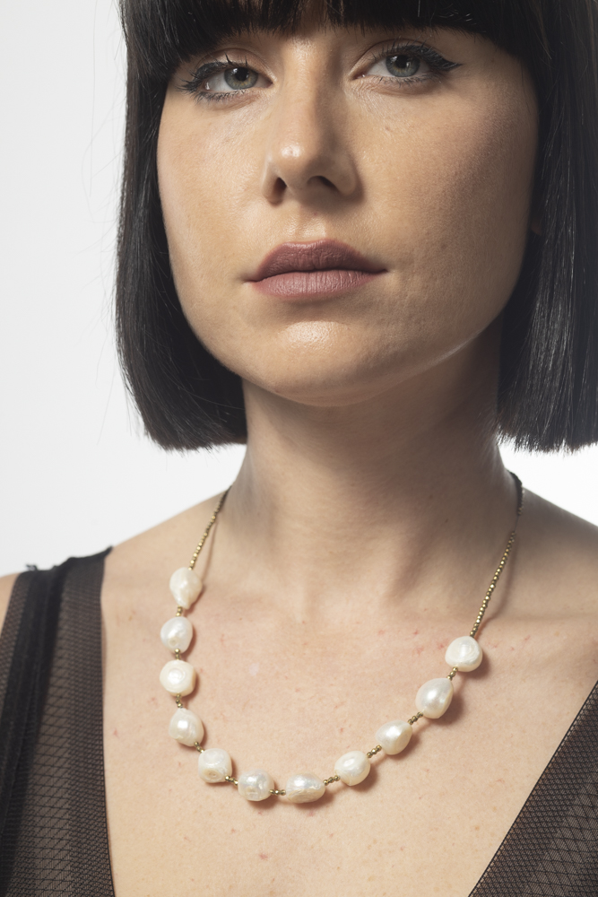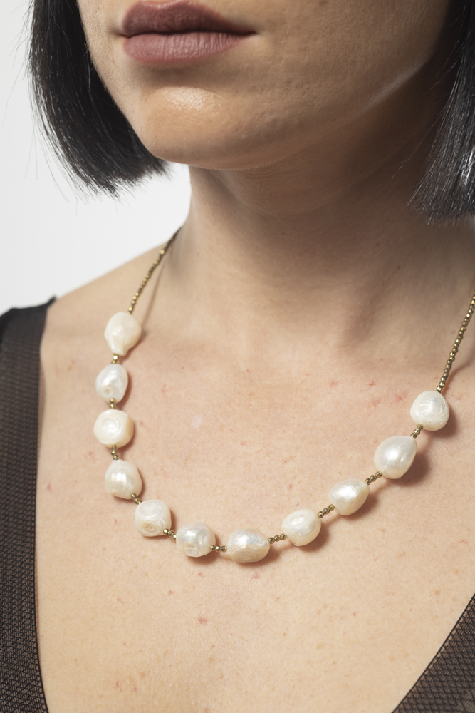 שרשרת פנינים גדולות גולמי בשילוב חרוזי /זהב