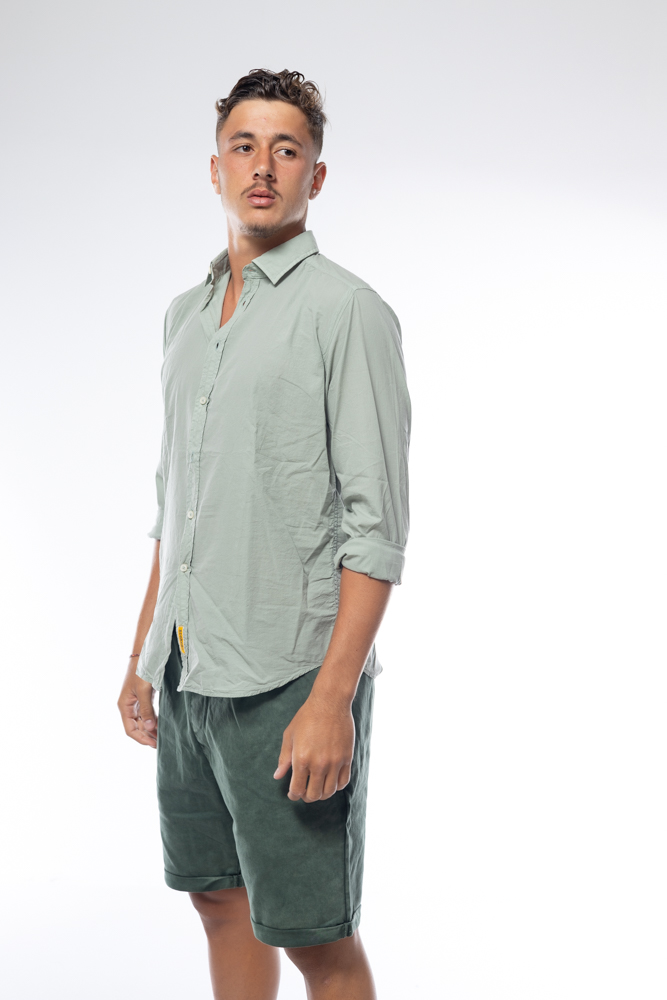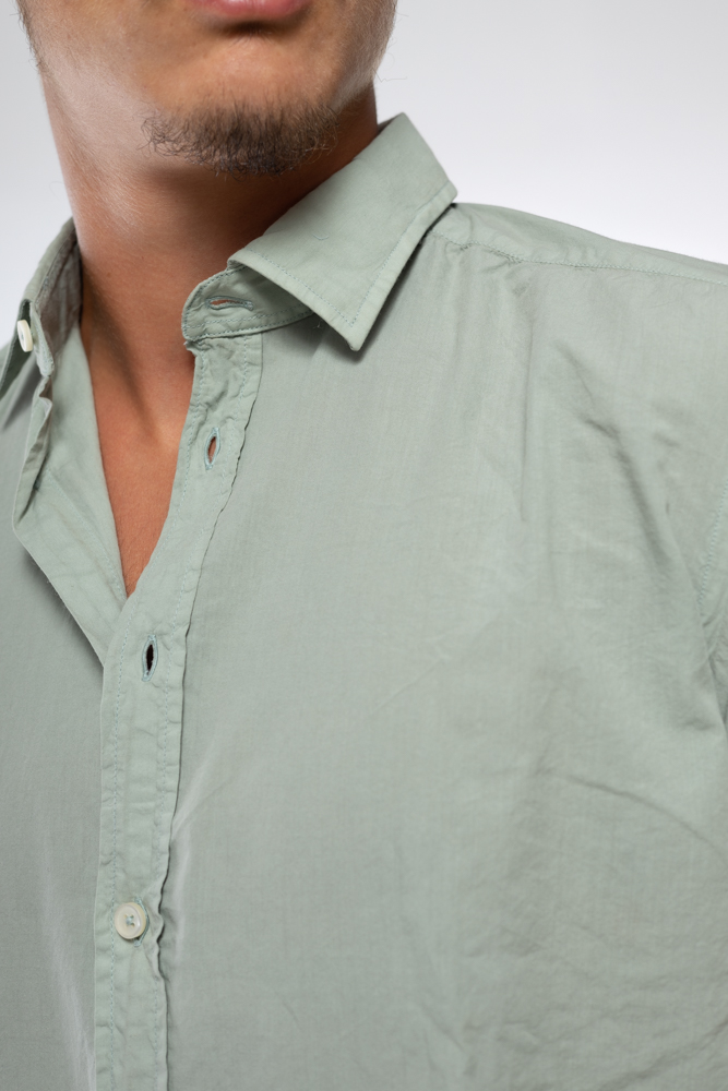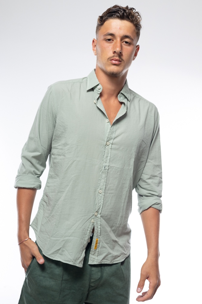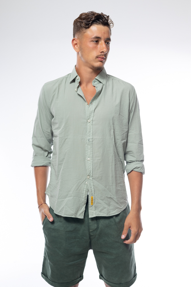 חולצת כותנה צווארון רגיל איטליה | ירוק בהיר