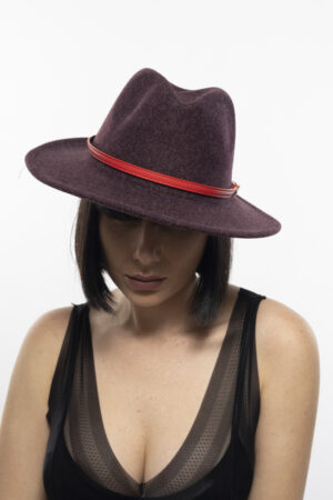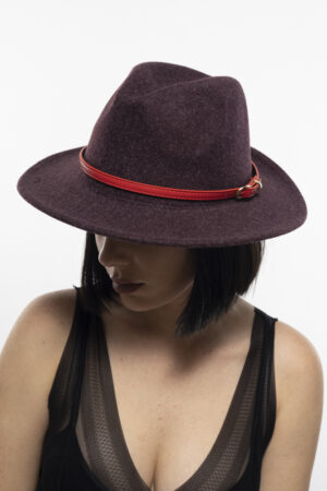 כובע צמר רצועת עור אדומה / אפור כהה