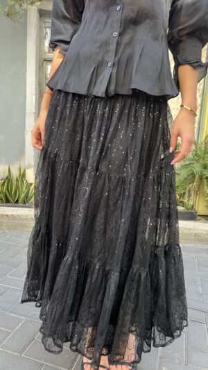 חצאית טול קומות מקסי עם גומי במותן.