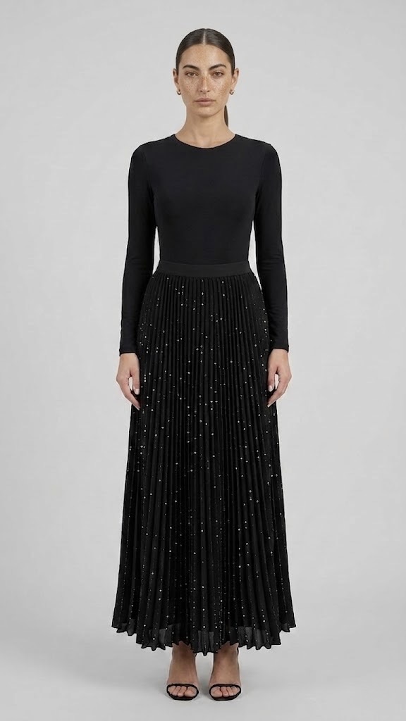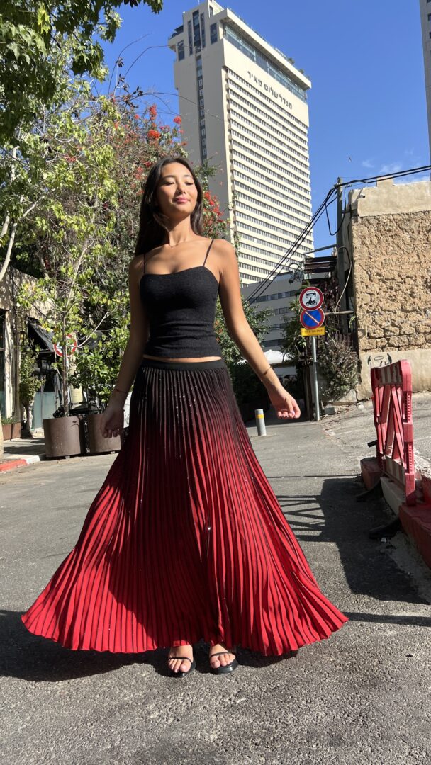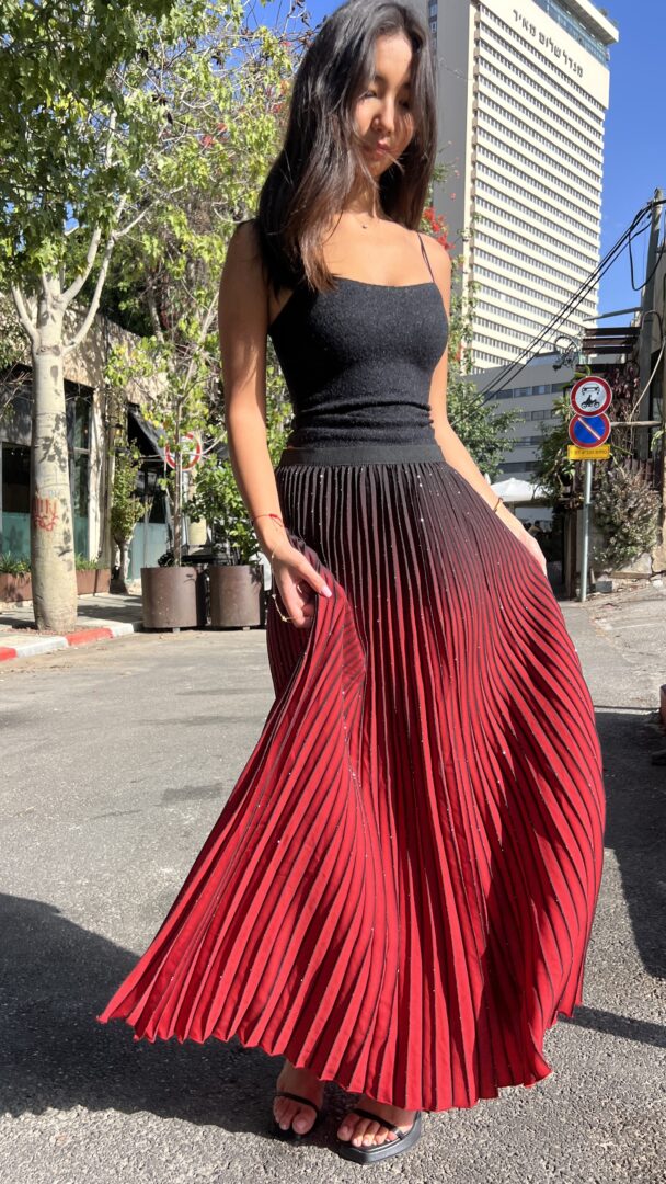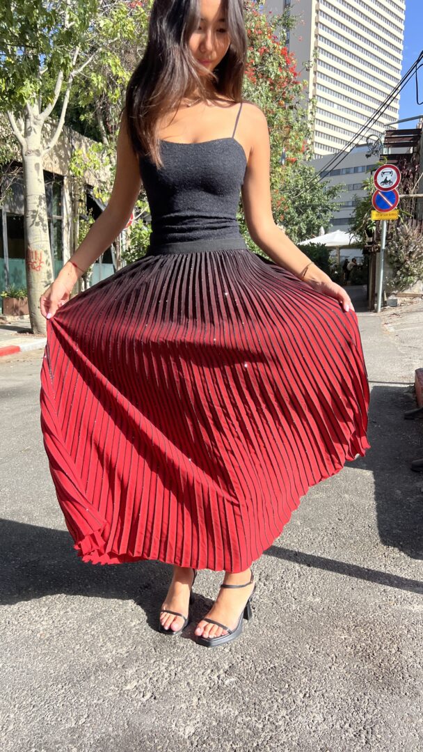 חצאית פליסה מבד נצנצים אורך מידי