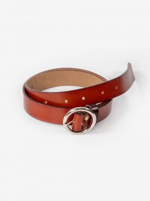 חגורה עם אבזם עגול כסף /בורדו