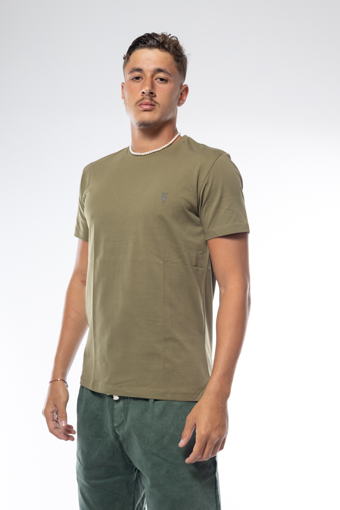 חולצת טי שירט עם הדפס לוגו בחזית. לחולצה שרוולים קצרים ומפתח צוואר עגול.